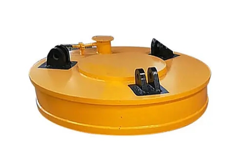 電磁吸盤通電時產生的電磁吸力可以吸附各種鐵磁性礦石、廢鐵廢鋼、鋼軌、鋼錠等物料停止運輸,無需事先安裝在起重機的料斗或包裝箱、包裝袋內,省時省力。